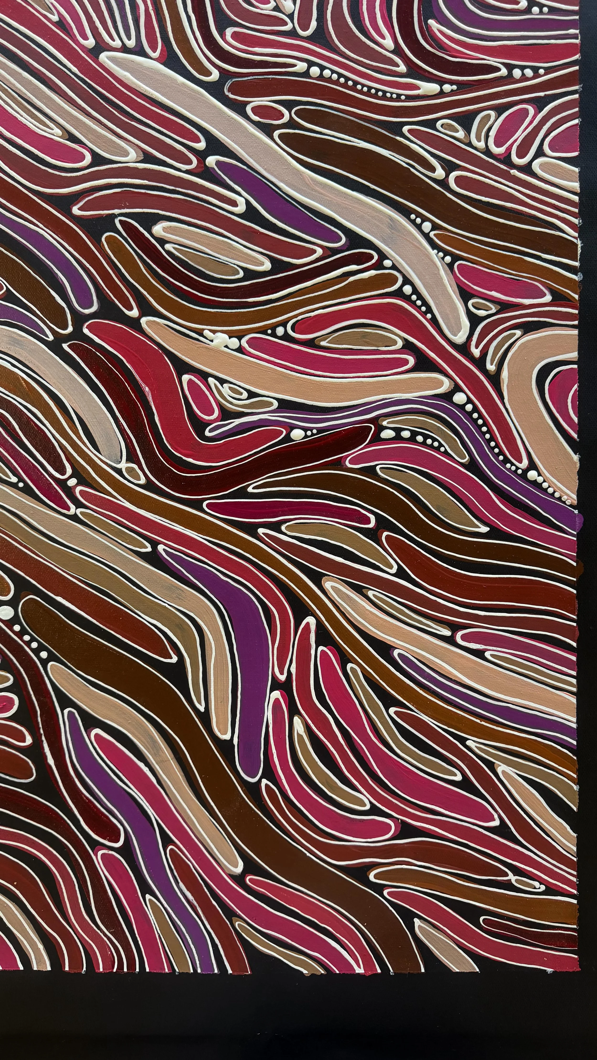 Through colour, pattern and rhythm, I share a contemporary expression of the Country that shapes me and the cultural threads that continue to guide my journey.
